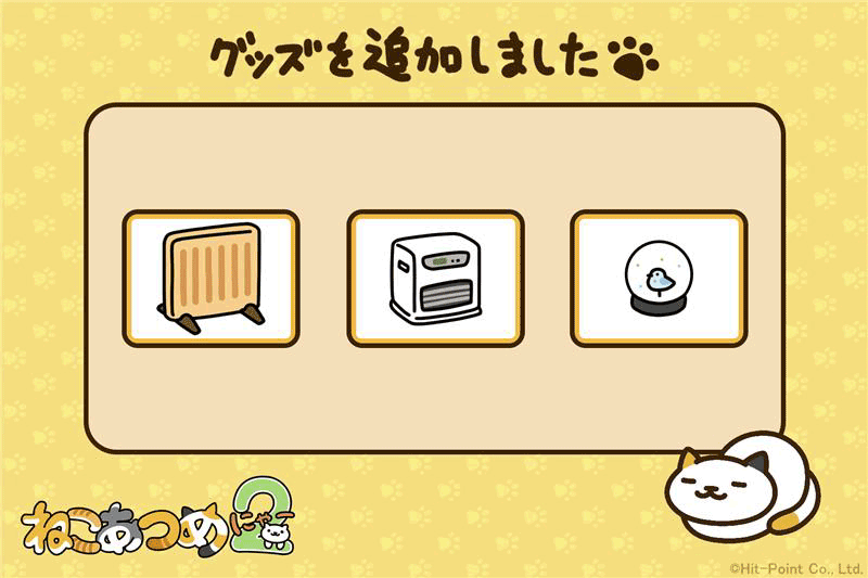 App StoreおよびGoogle Playにて『ねこあつめ2』をVer 2.10.0にアップデートしました。